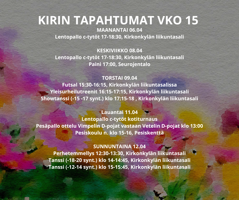 Perhon Kiri ry toimii urheilun yleisseurana. Seuran lajeihin kuuluvat hiihto, paini, suunnistus ja yleisurheilu sekä joukkuelajeina pesäpallo ja lentopallo.